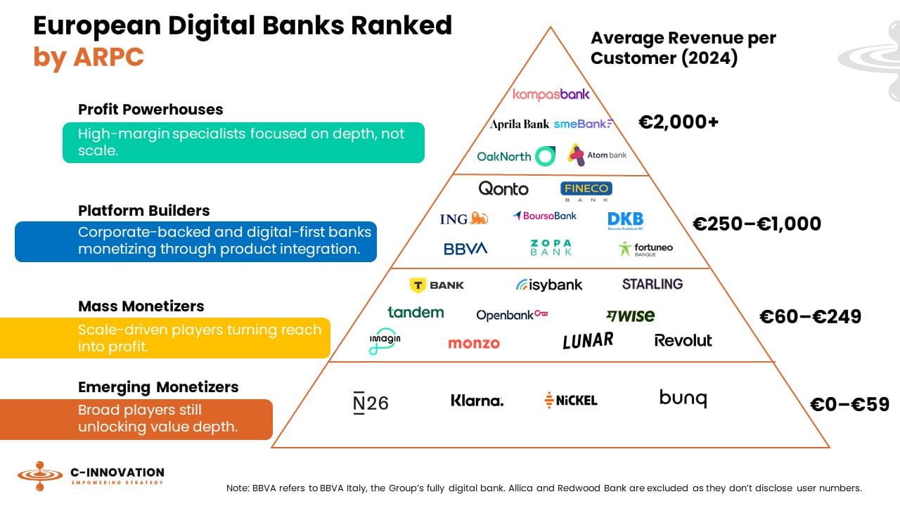 🌍 Europe’s digital Banks ranked by Average Revenue Per Customer (ARPC) 👇