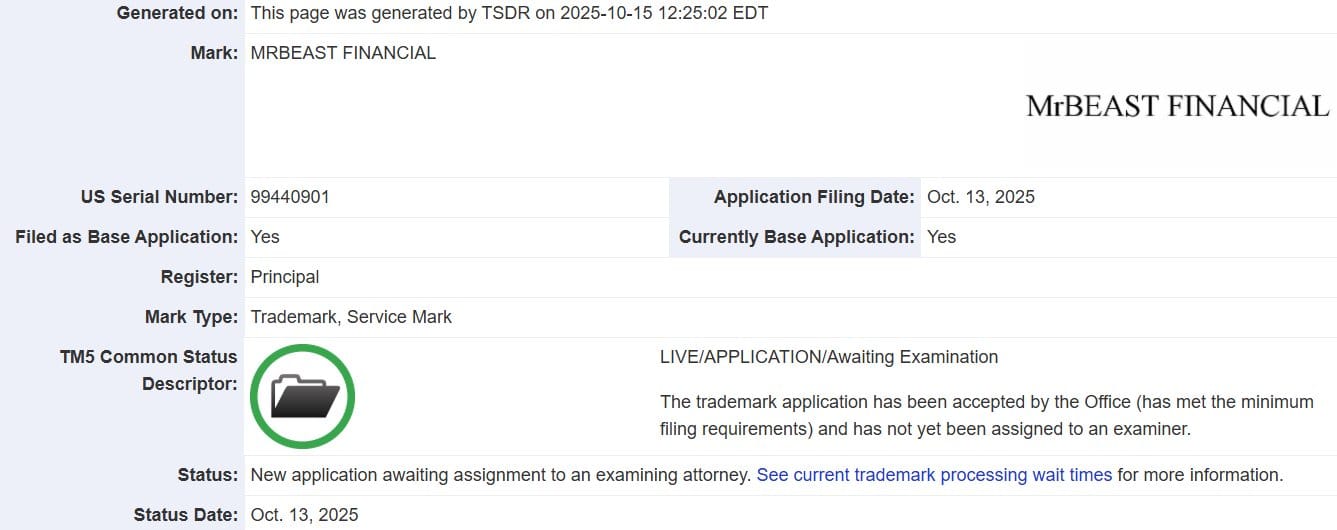 MrBeast just filed a trademark to launch his own bank. Yep, MrBeast Financial might soon be a real thing.